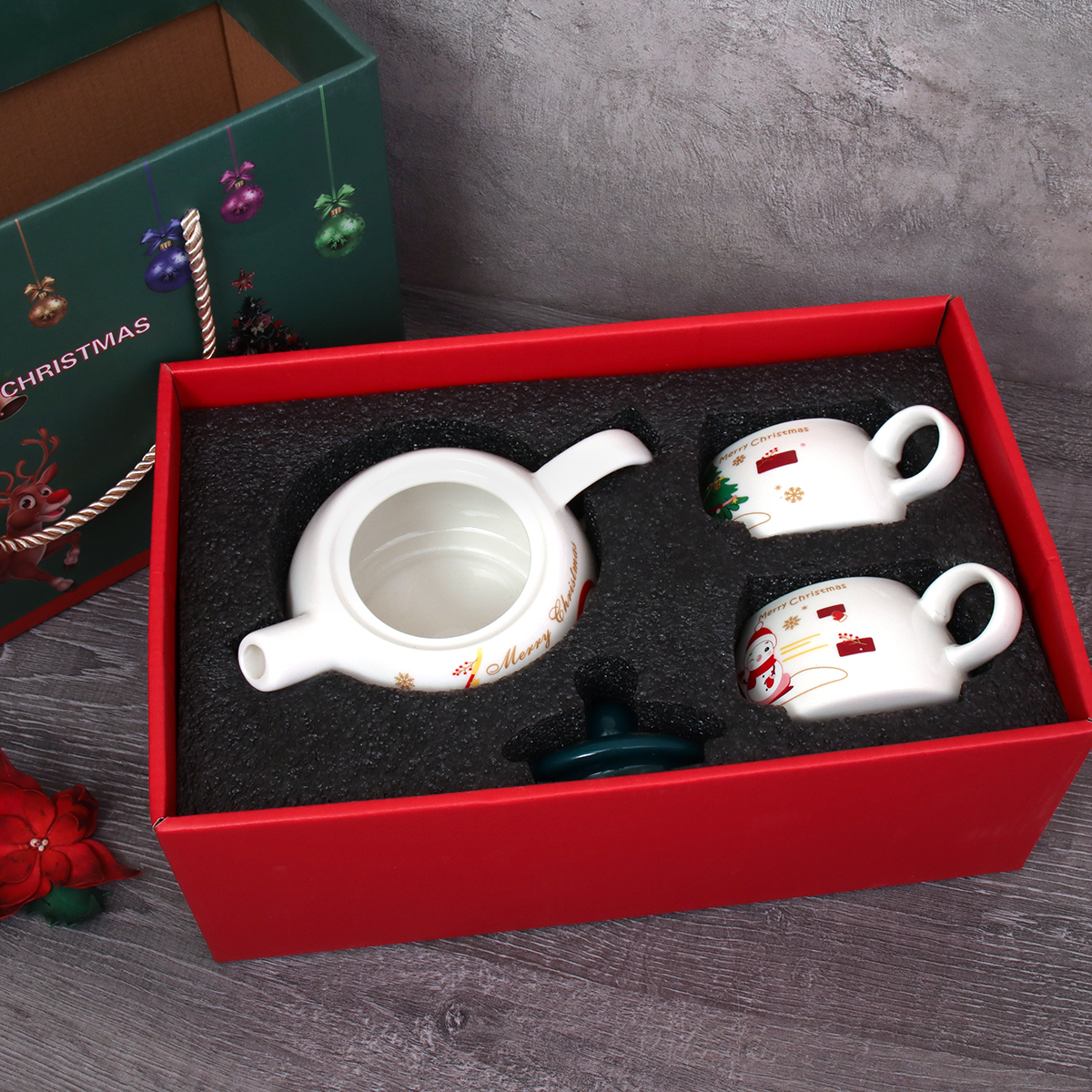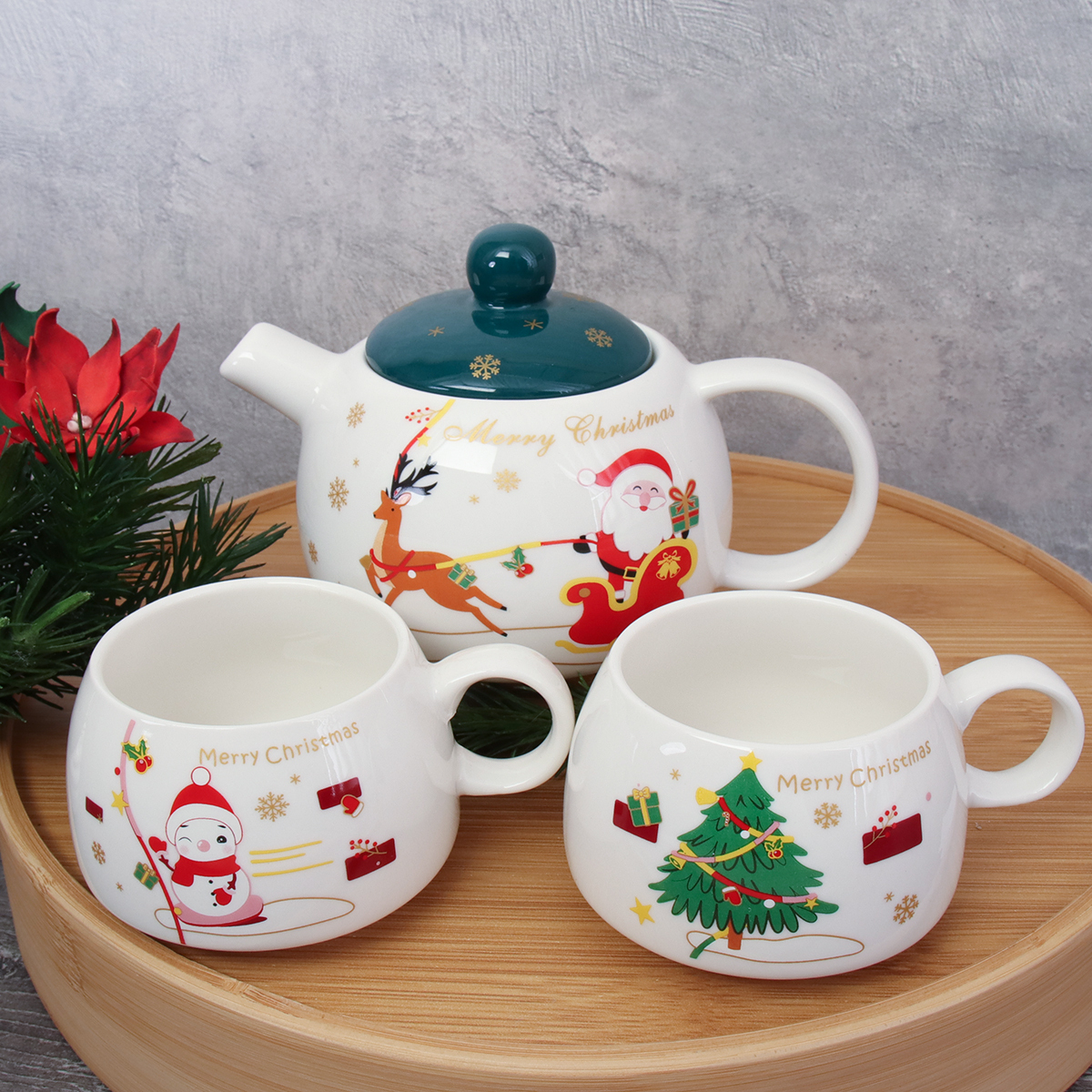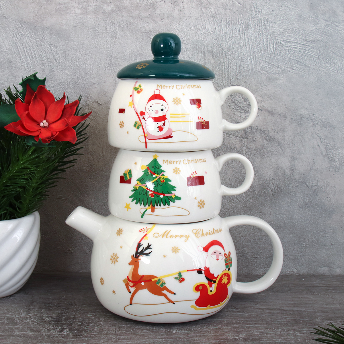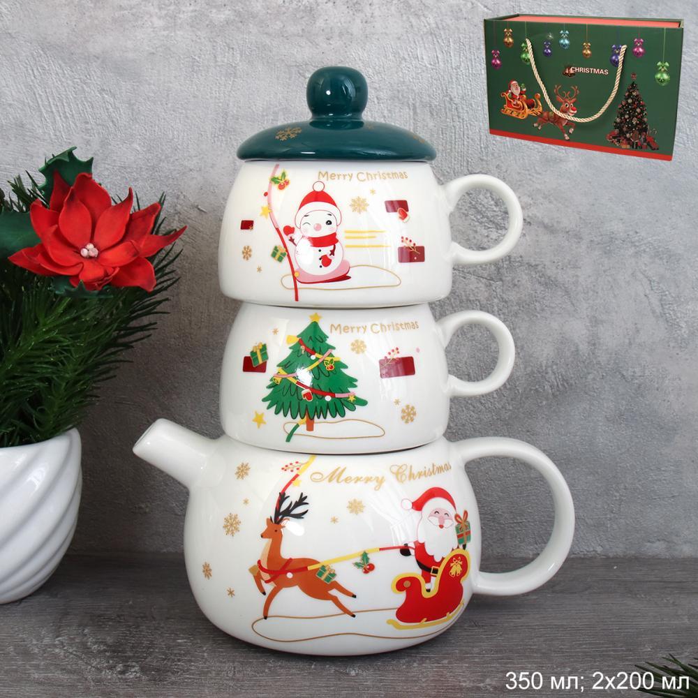 Чайный набор 3 предмета Новый год чайник и 2 кружки/ TFT046-1 /уп 24/новогодний