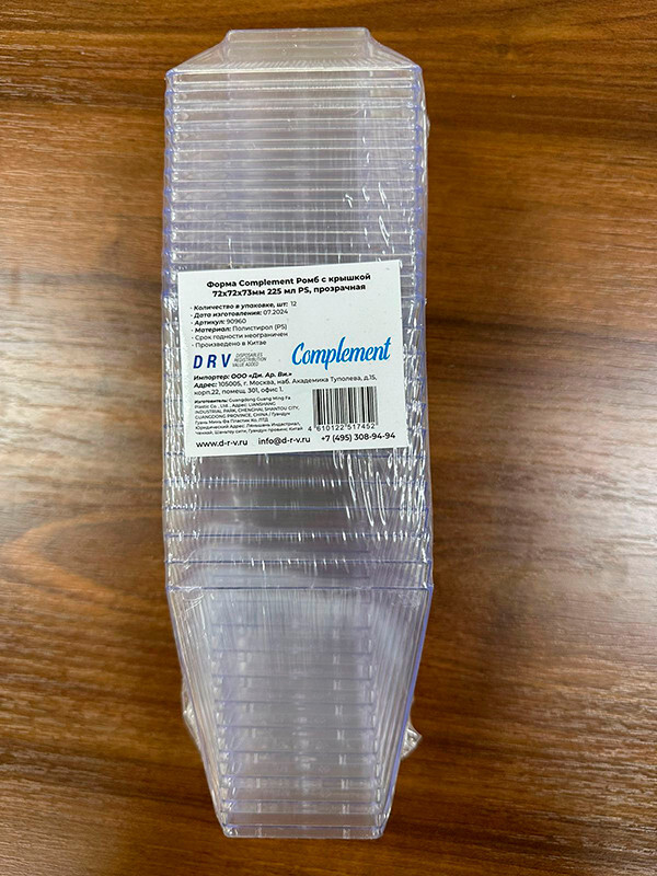 Форма Complement Ромб с крышкой 72х72х73мм 225 мл, PS, прозрачная
