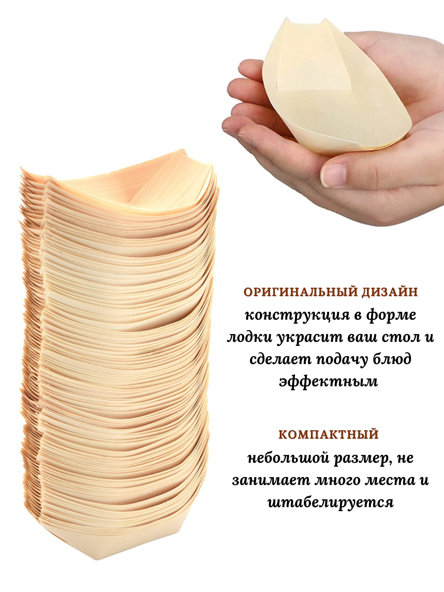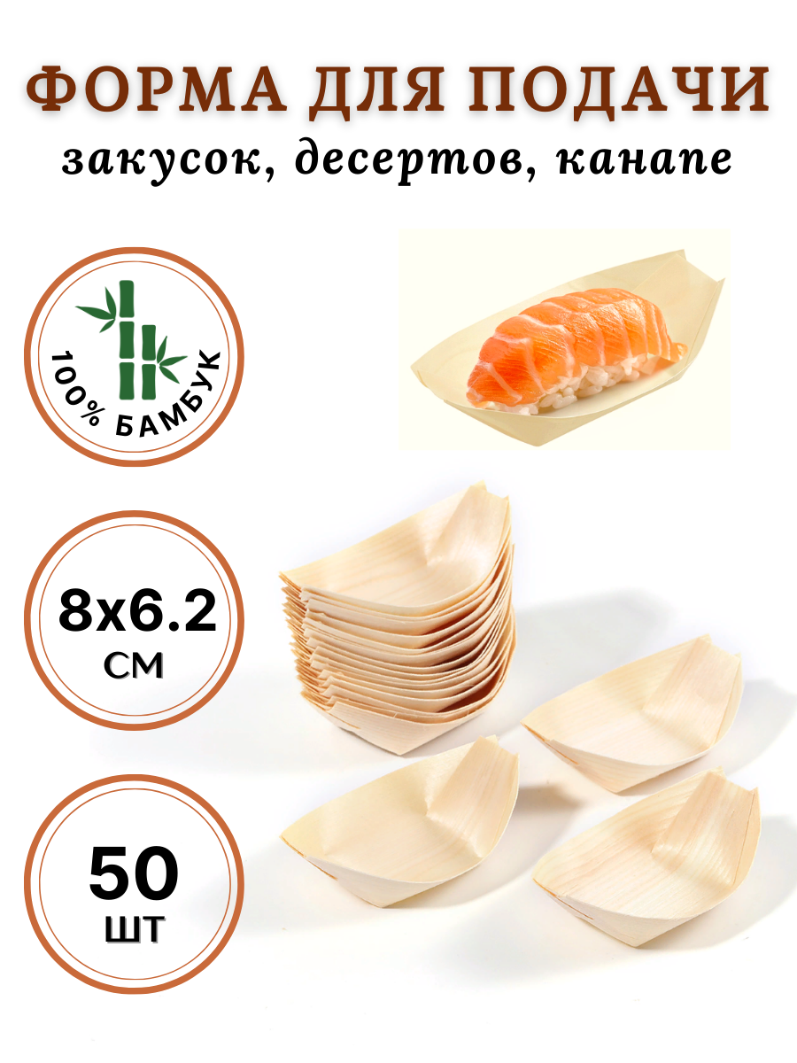 Форма лодка бамбук для канапе 80*60, M, CGPro 50 шт упак