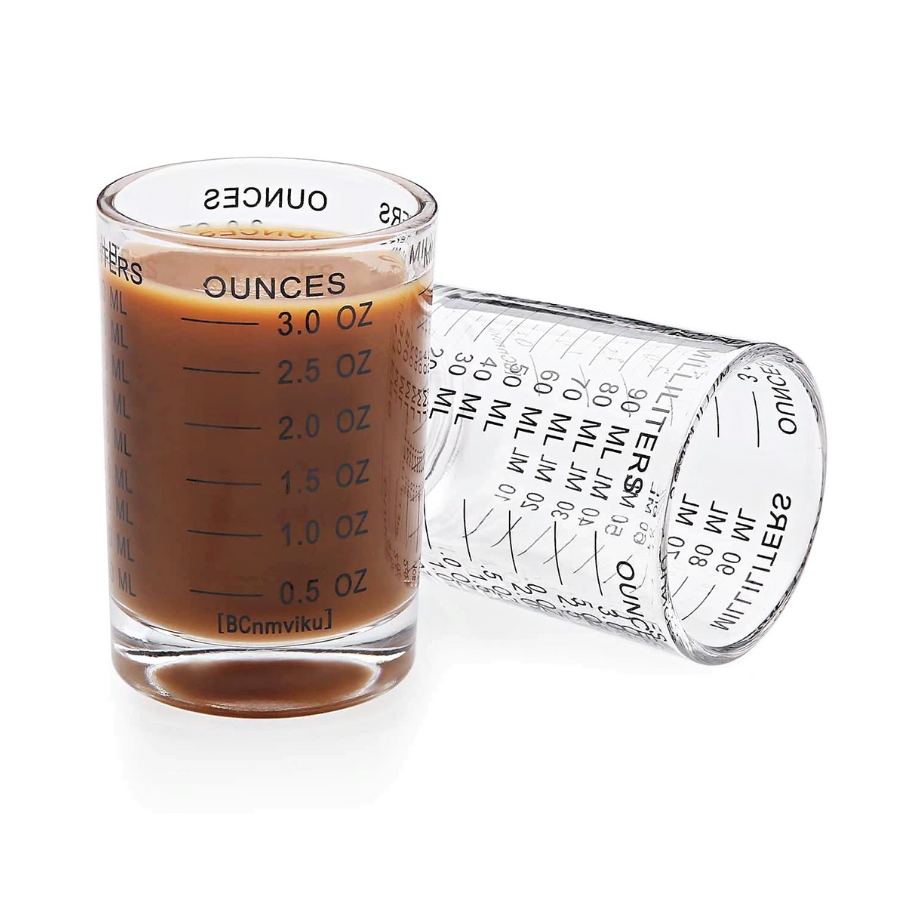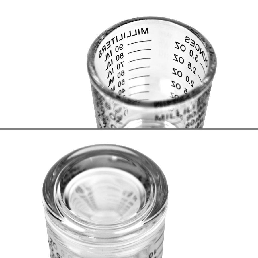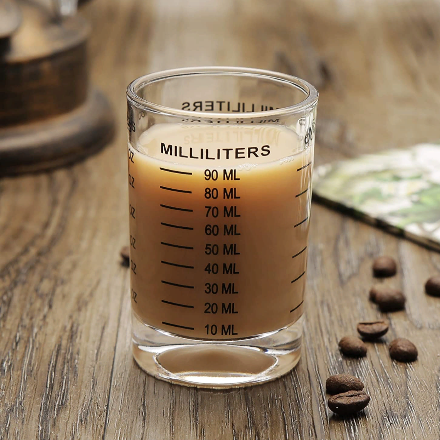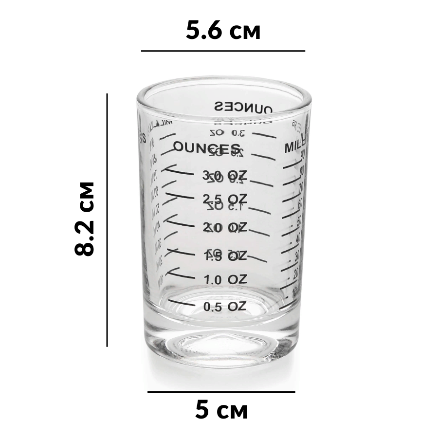 Стеклянный мерный стакан, предназначенный для настройки пролива эспрессо в кофемашине. Мерник для эспрессо имеет объем 90 мл. Шот для кофе изготовлен из толстого стекла с толстым дном, что делает его устойчивым к опрокидыванию и нагреву от эспрессо. Эспрессо шот имеет четкие мерные шкалы в миллилитрах и унциях. Кофейный шот имеет две мерные шкалы 10-90 мл и 0,5-3 унции. Мерный стакан из стекла также используется бариста для пролива эспрессо ристретто и настройки кофемолки или кофеварки. Стеклянный шот можно также использовать как мерный стакан для кухни, или мерник для приготовления коктейлей. Этот мерный шот отличный помощник среди кухонной посуды и инвентаря.