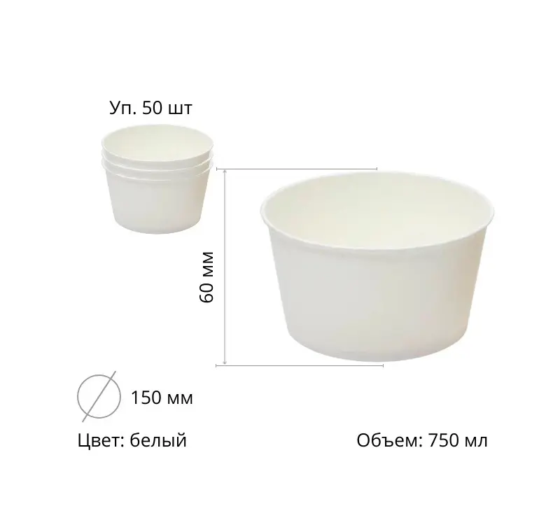 Контейнер бумажный круглый, отлично подходит для салатов, закусок, овощных нарезок.