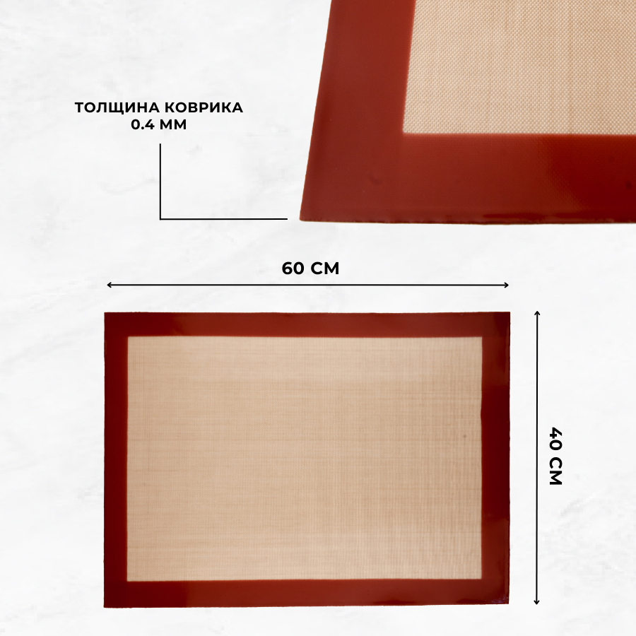 БОЛЬШОЙ РАЗМЕР: силиконовый коврик для выпечки в духовке многоразовый имеет размер 60*40 см, толщина 0,4 мм. Приобретите кондитерский коврик силиконовый и наслаждайтесь легкостью и вкусом приготовленной вами выпечки!