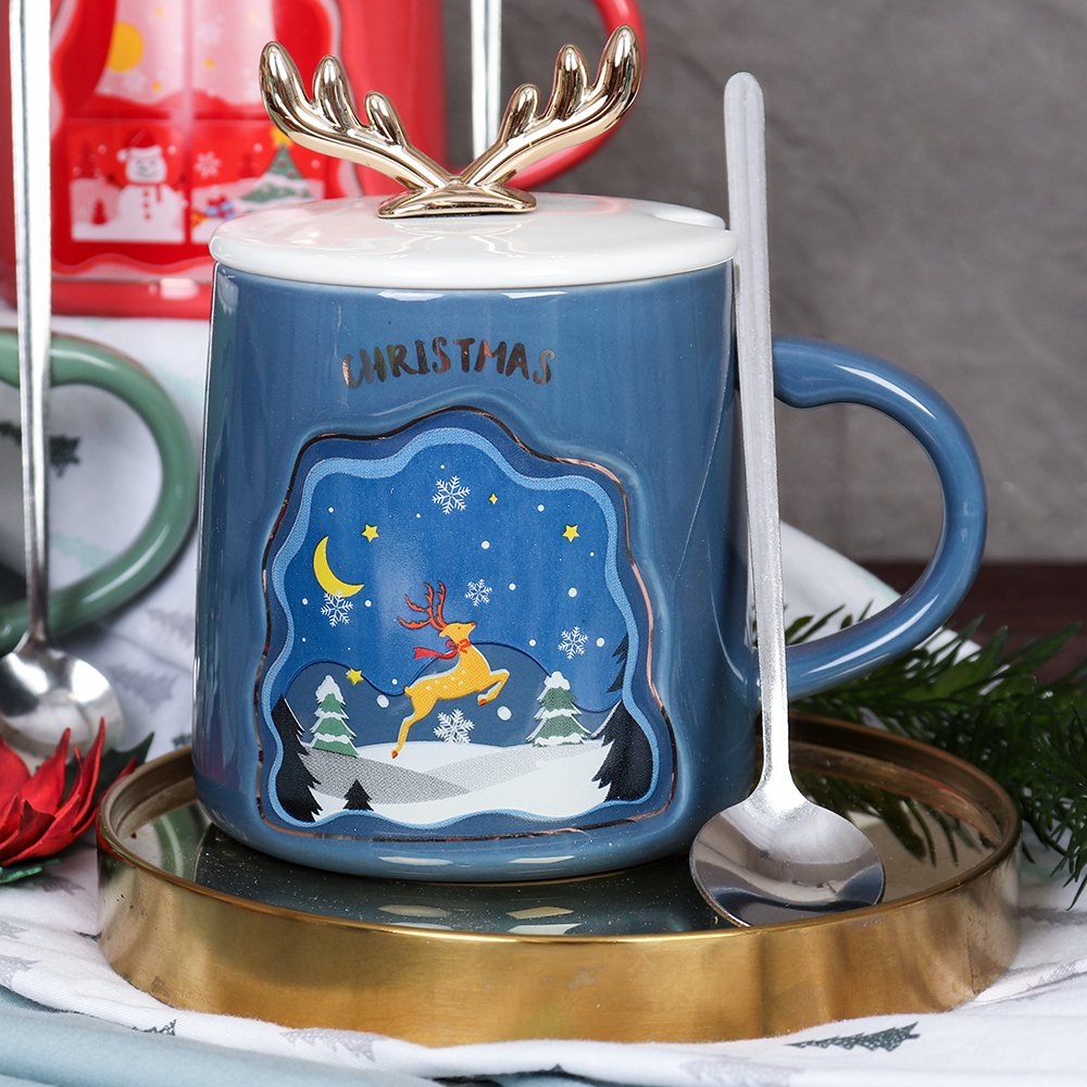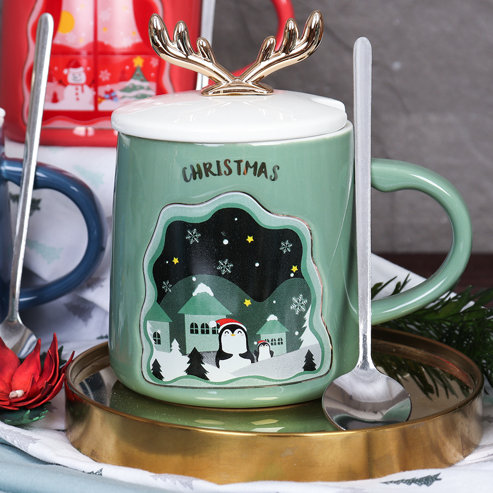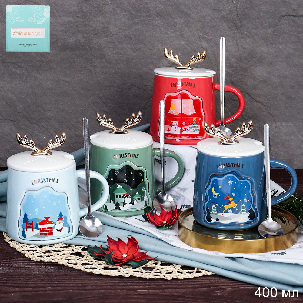 Кружка новогодняя с крышкой /400 мл/ 855-5 /уп 60/