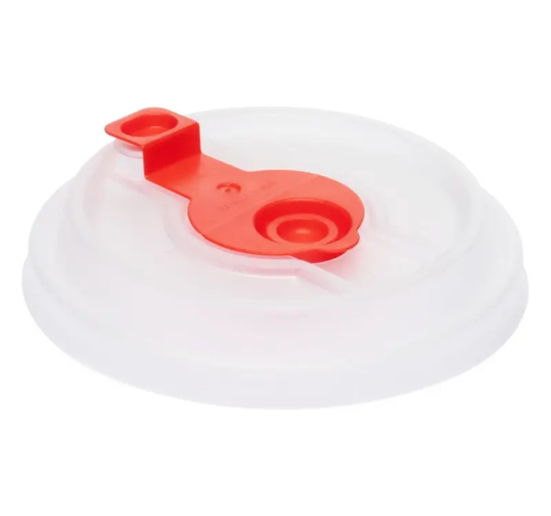Пластиковая крышка для стакана 90 мм с заглушкой. Крышка изготовлена из полипропилена, надёжно накрывает стакан, плотно прилегая к его краям. Крышка выполнена в прозрачном цвете с красной заглушкой, что обеспечивает герметичное закрытие стакана, а толщина стенок крышки позволяет длительное время сохранять тепло и не обжигать руки при открытии стакана с горячими напитками. Подходит для стаканов с верхним диаметром 90 мм. С данной крышкой Вашим клиентам не придётся думать о том, что их любимый напиток может пролиться.