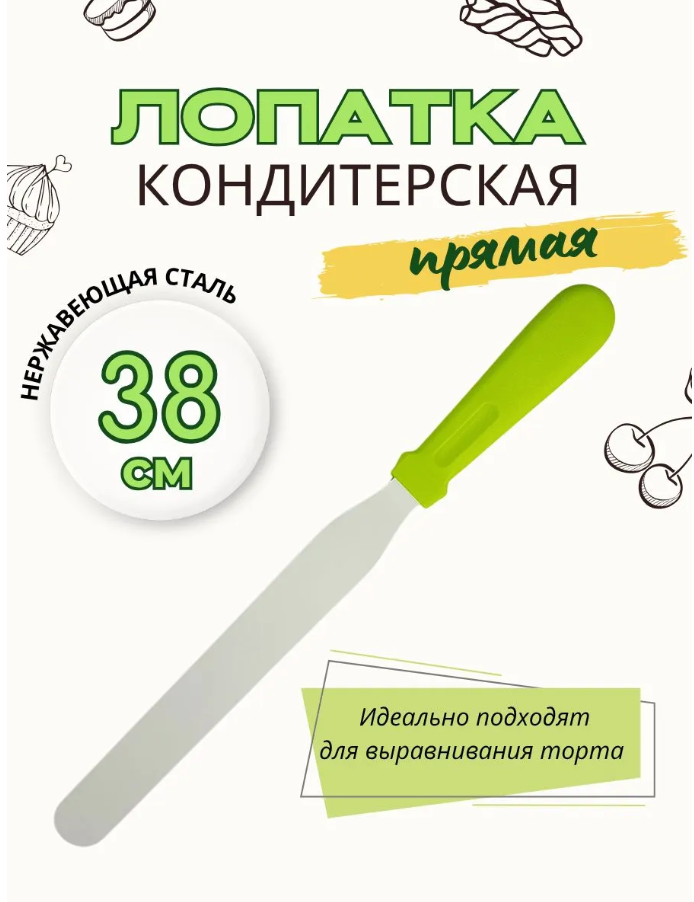 Лопатка для торта 38*3 см.зеленая