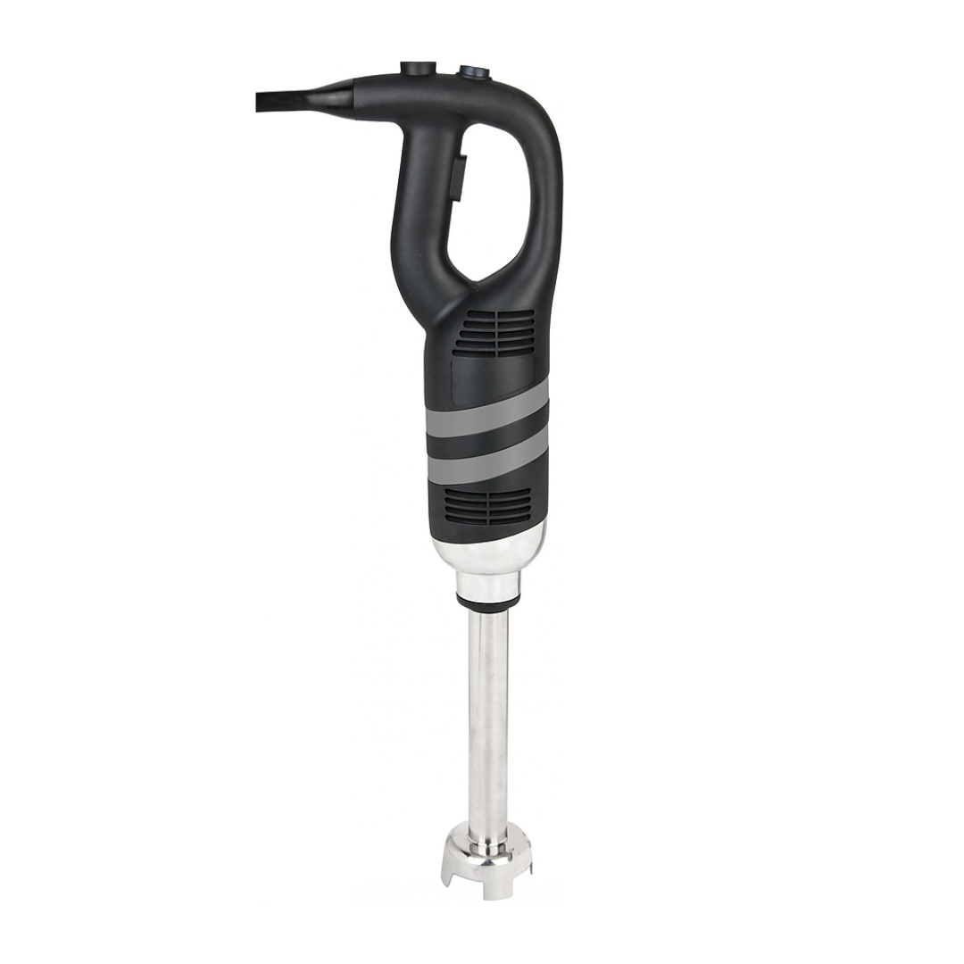 Предназначен для измельчения и перемешивания продуктов до однородной массы, а также приготовления супов-пюре, майонеза, муссов и картофельного и овощного пюре на предприятиях общественного питания и торговли. Модель оснащена системой саморегулирования скорости. Корпус выполнен из пластика, насадка-измельчитель - из нержавеющей стали.