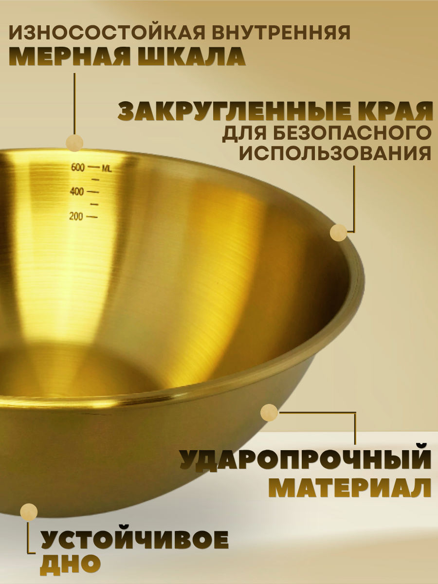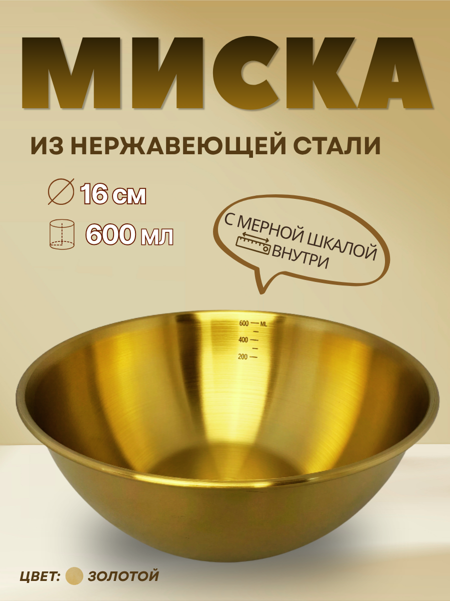 Миска нержавеющая сталь "Золото"16 см с мерной шкалой CGPro