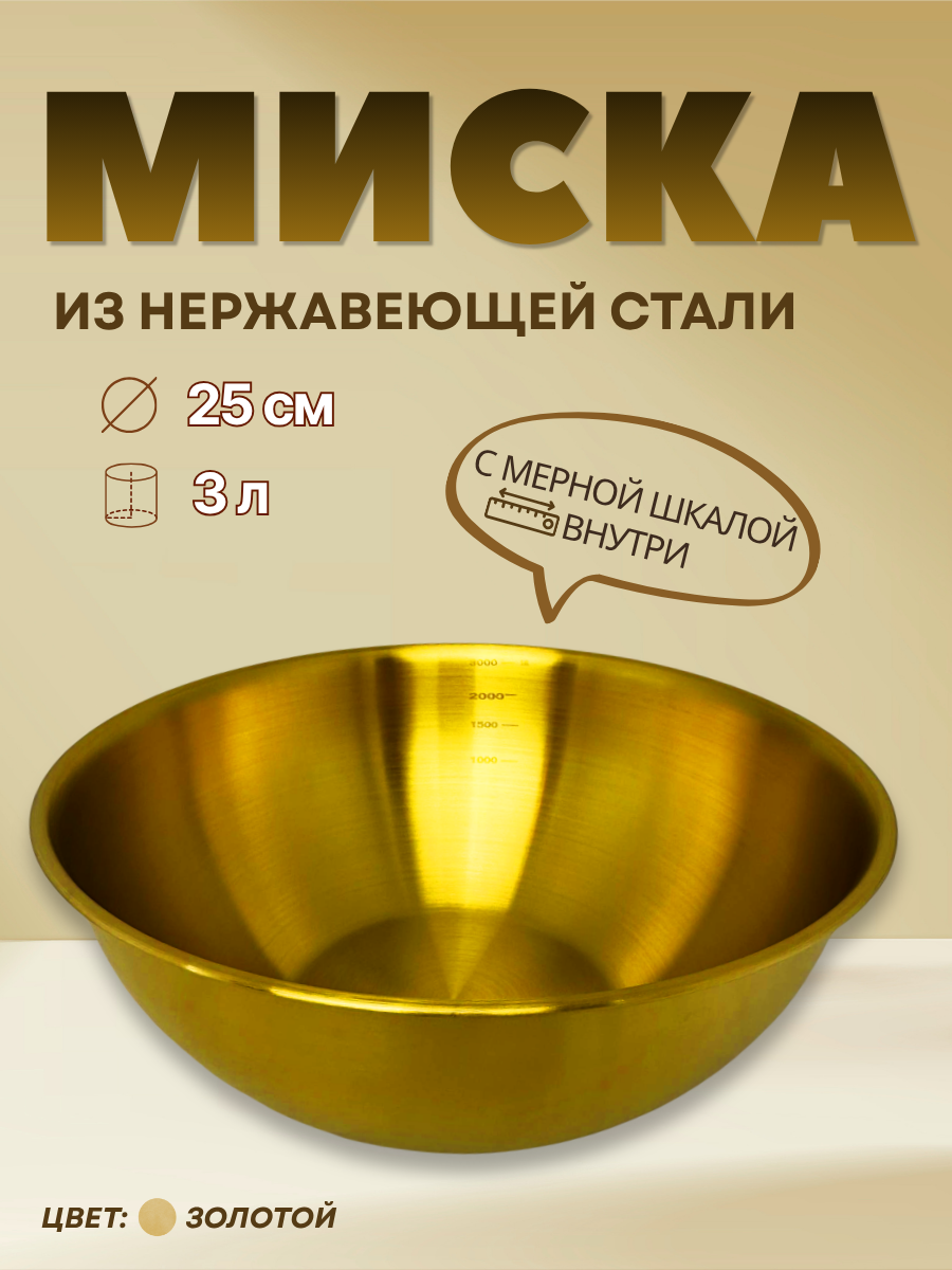 Миска нержавеющая сталь "Золото"25 см с мерной шкалой CGPro