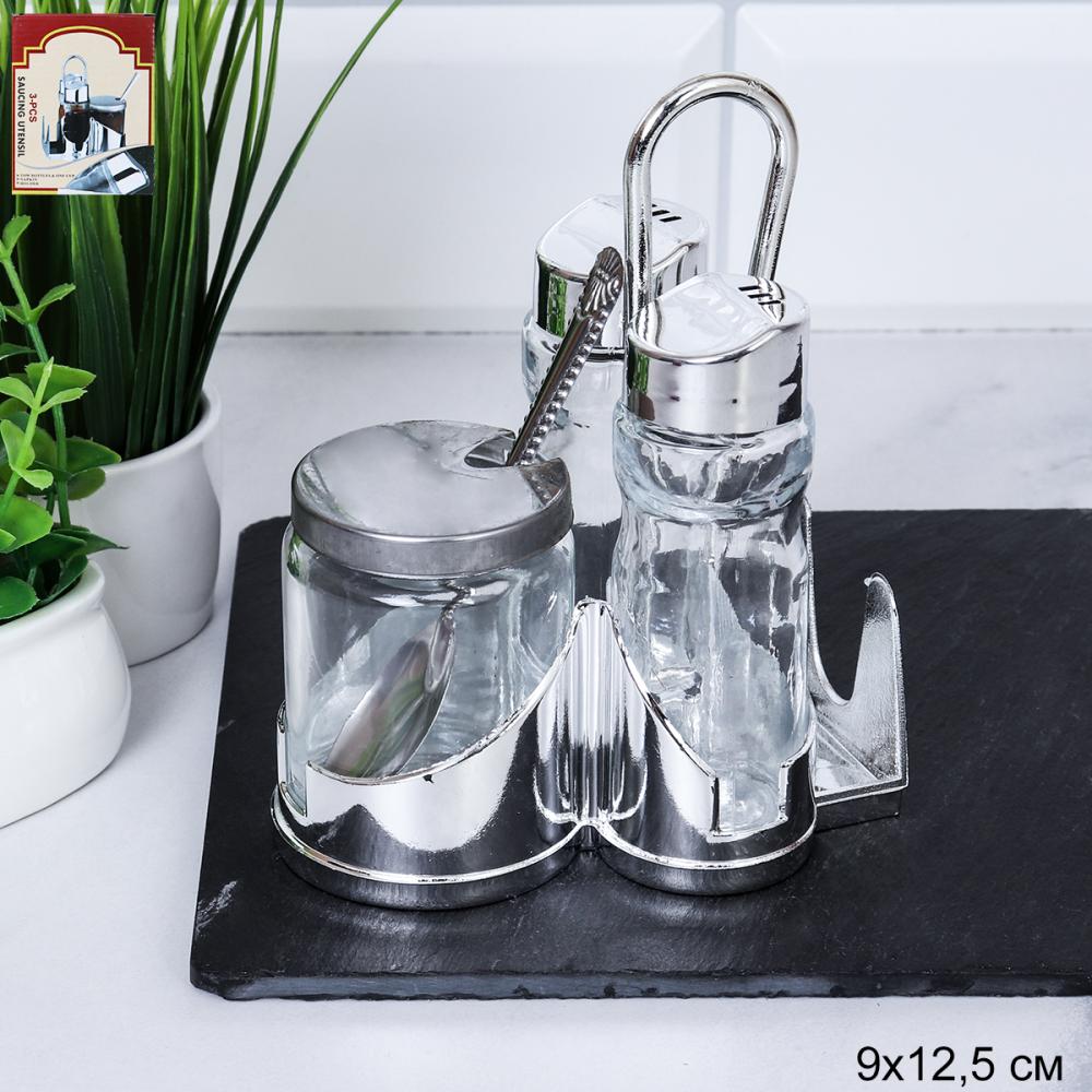 Набор для специй 4 предмета на подставке пластик с ячейкой под салфетки / A-824 /уп 60/