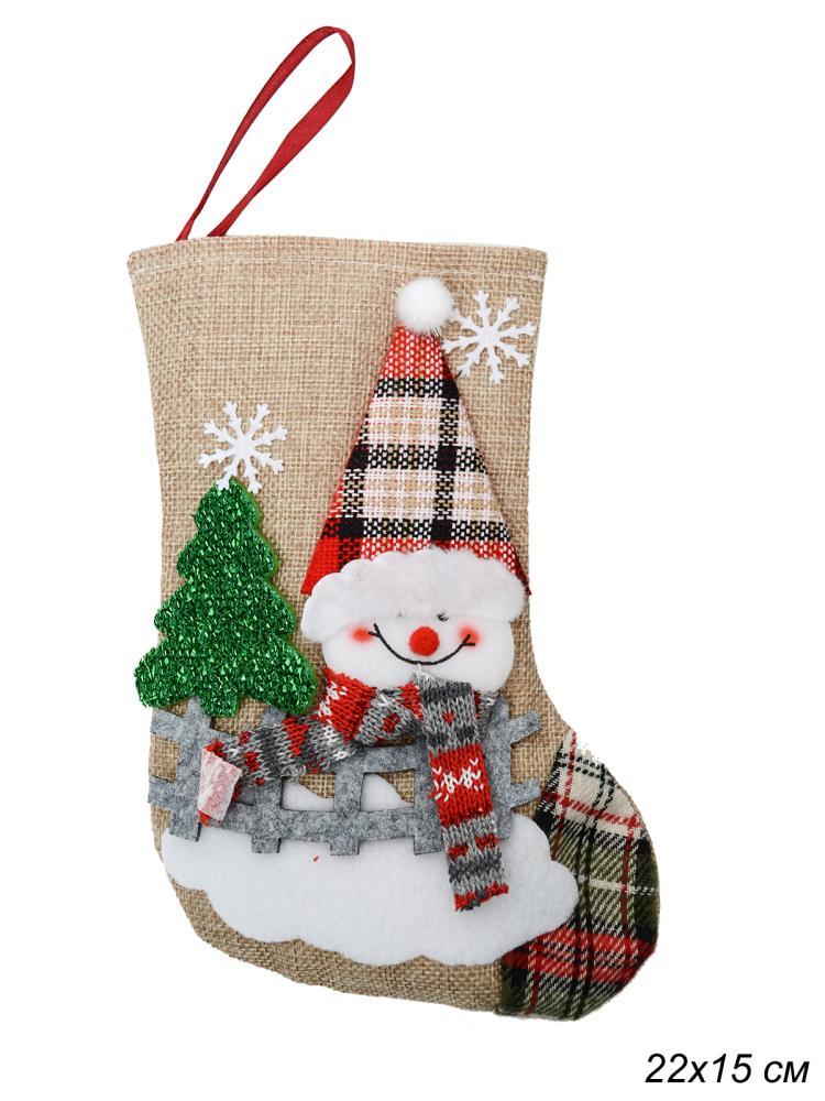Новогодний носок для подарков Снеговик 22x15 см / Е139 /уп 500/