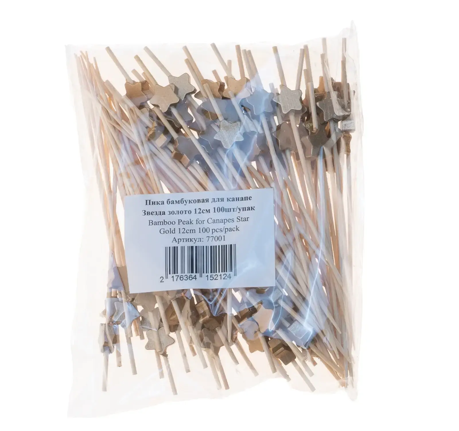Пика бамбуковая для канапе Звезда золото 12 см Tambien ECO 100 шт/упак