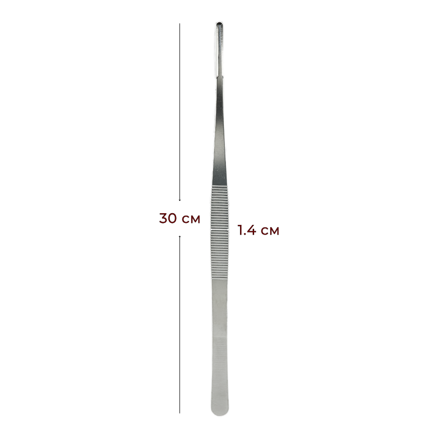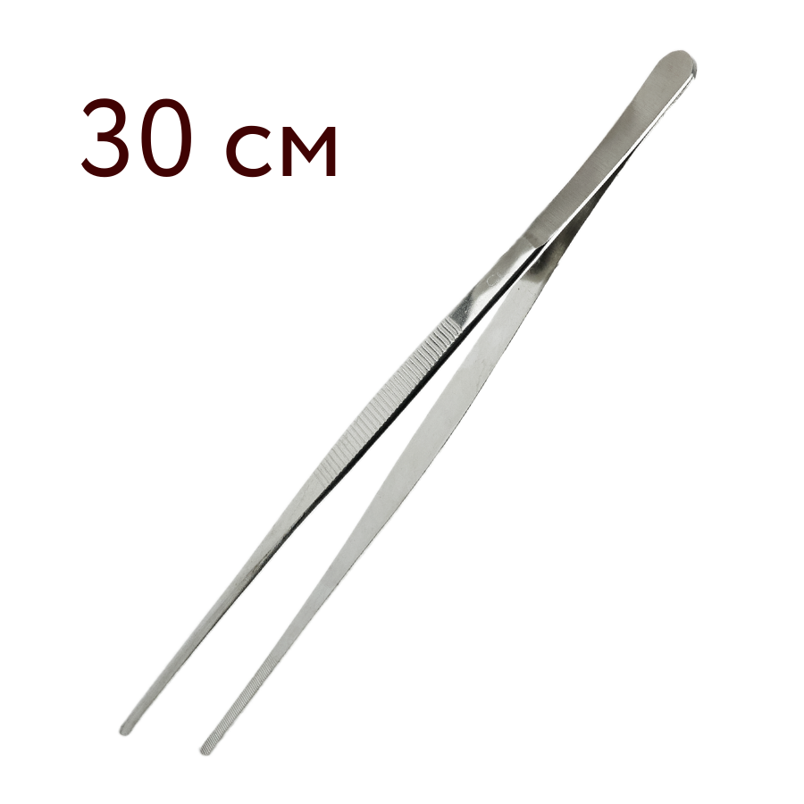 Кулинарный пинцет сделан из нержавеющей стали, его можно мыть в посудомоечной машине. Длина изделия - 30 см.
