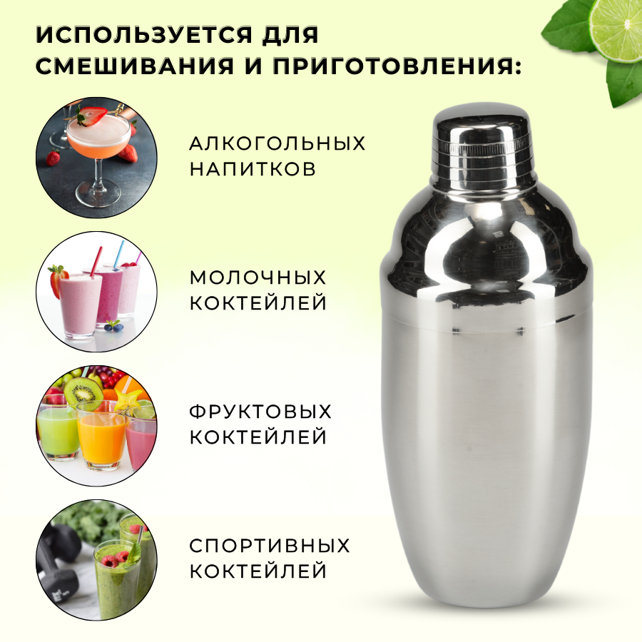 Этот шейкер для коктейлей барный считается самым «дружелюбным» к новичкам. Его легко собрать и снова открыть. Шейкер коктейльный состоит из металлического стакана для смешивания, крышки с перфорацией (роль стрейнера/фильтра) и закрывающего ее колпачка. Шейкер для коктейлей алкогольных изготовлен из прочной нержавеющей стали, отличающейся высокой прочностью и стойкостью к коррозии. Металл хорошо сохраняет температуру - ваш напиток со льдом будет долго оставаться охлажденным.