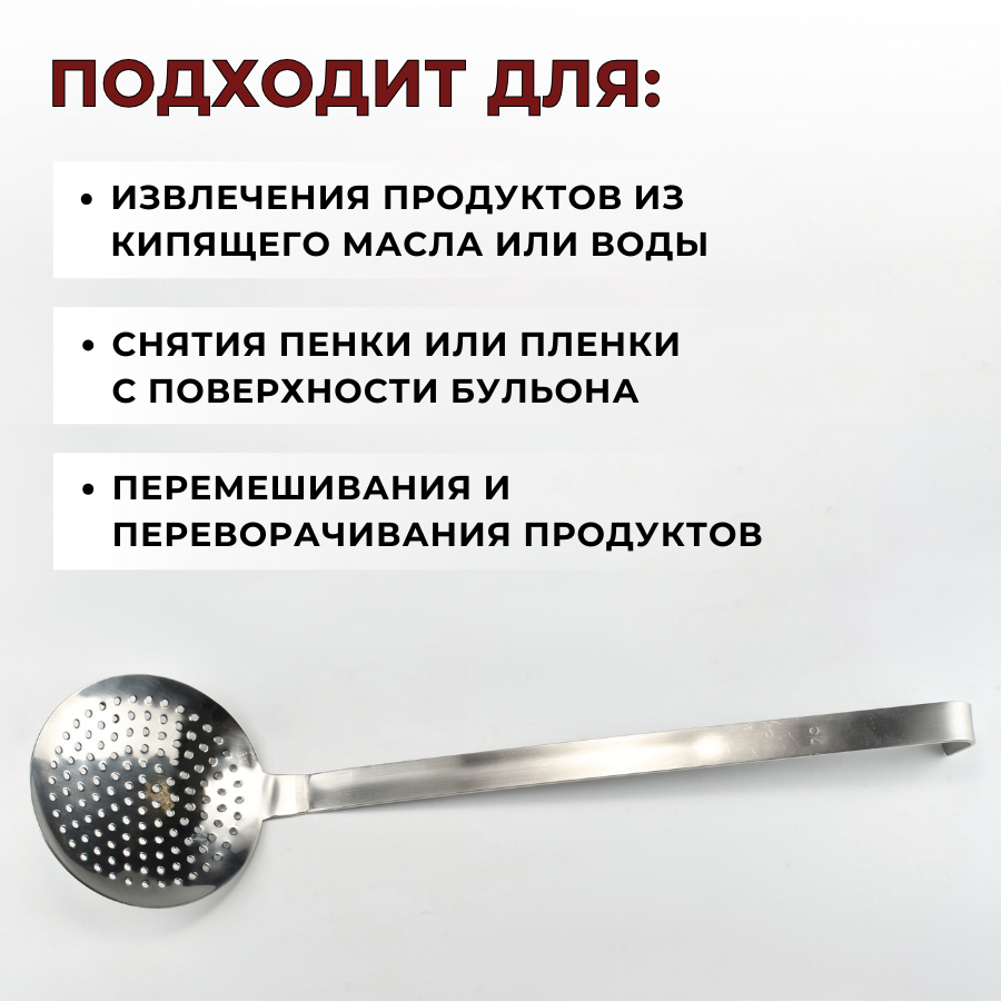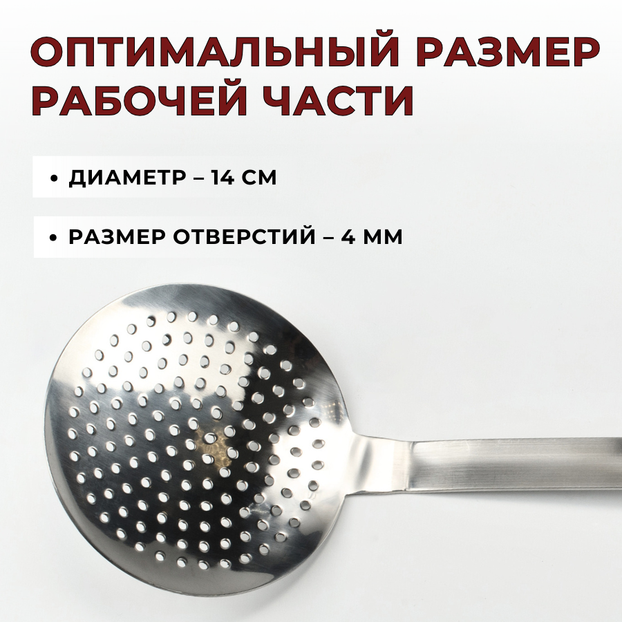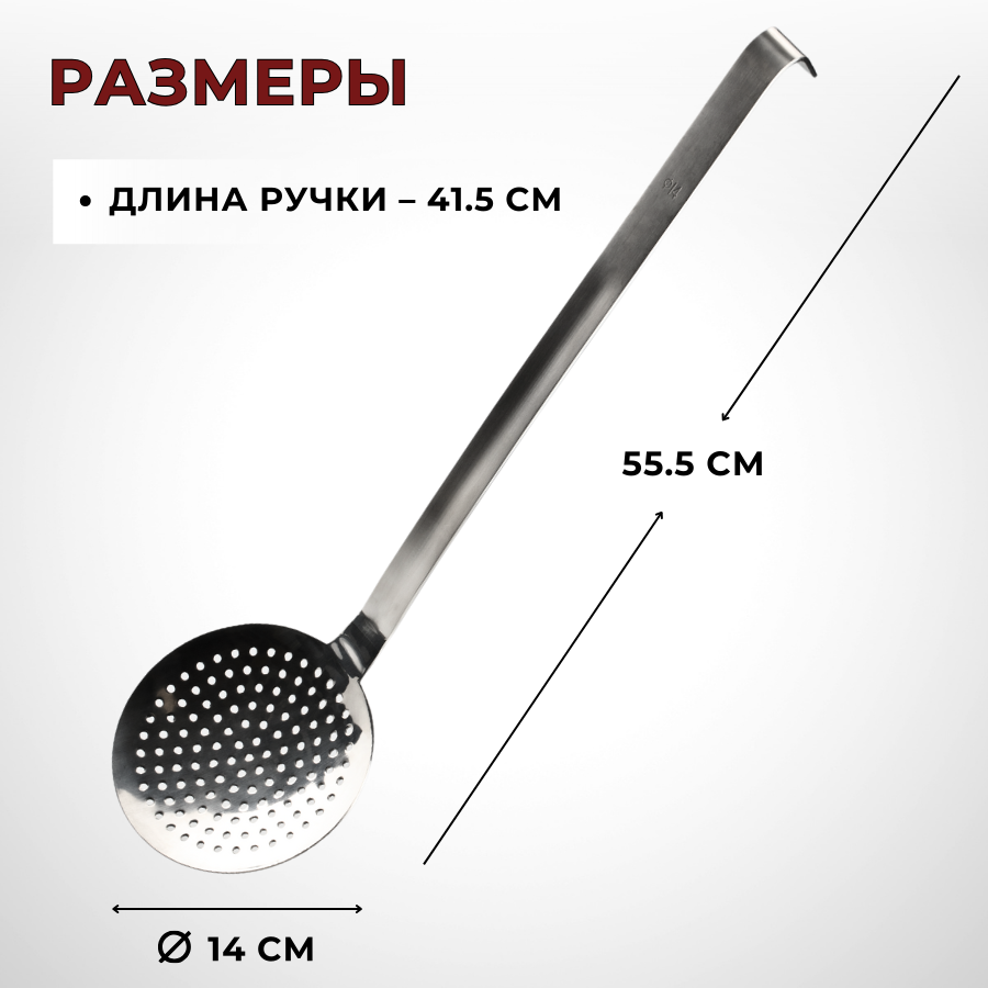 Шумовка D=14 см, L ручки 41,5 см, цельнотянут., нерж. сталь AISI 201, толщина 1.5 мм, CGPro