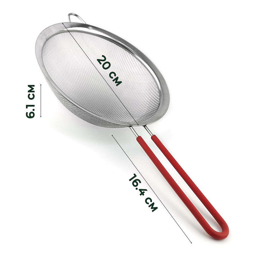 Сито выполнено из нержавеющей стали, отличается прочностью и долговечностью, не подвергается коррозии и отвечает всем гигиеническим нормам и требованиям. Ручка сита покрыта силиконом – современным и комфортным материалом, который приятен на ощупь и не позволяет ситу выскальзывать из руки во время использования.