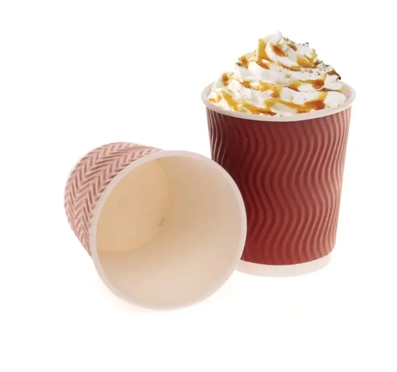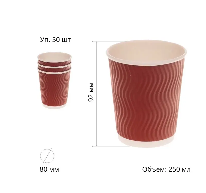 Стакан 250 мл бумажный Complement d=80 мм гофрированный красный Волна