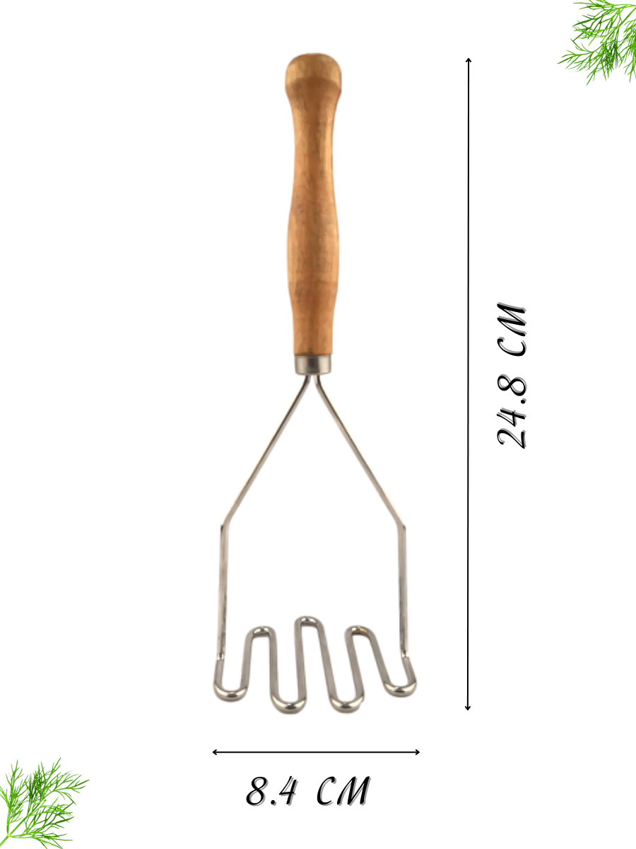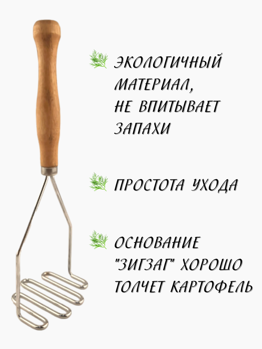Основание у толкушки для пюре изготовлено из нержавеющей стали. Ручка пресса для картофеля изготовлена из экологичного материала - дерева.